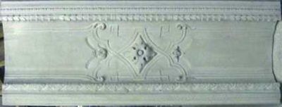 Ornamentales Eckgesims, Voute mit verzierter Profilierung und geometrischem Motiv.